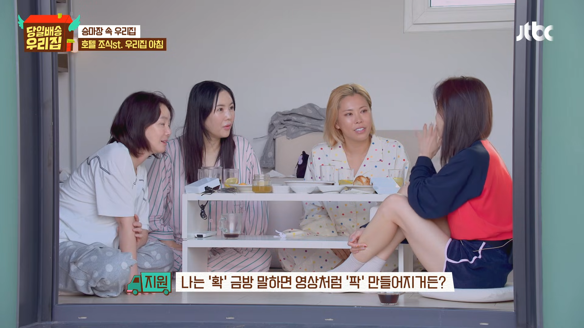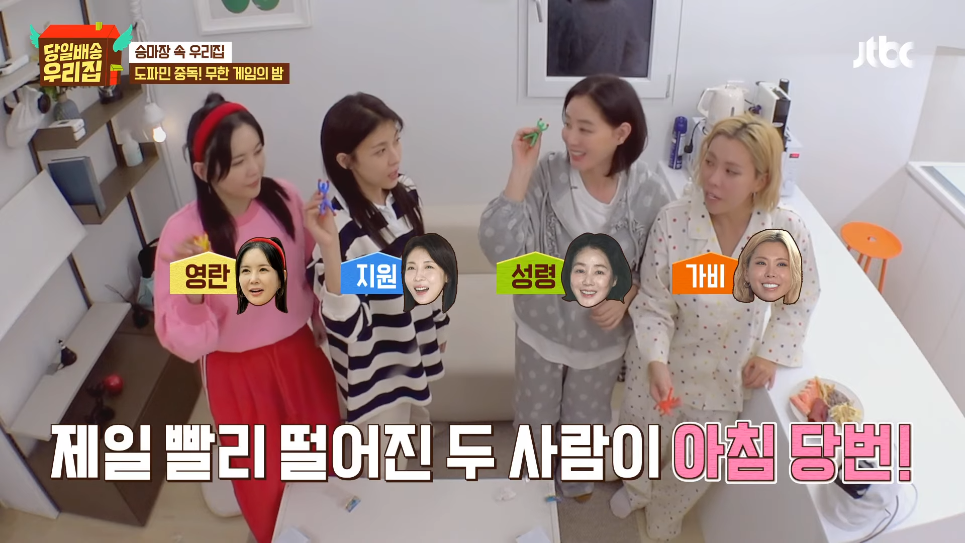 6日に放送されたJTBC『当日配送 我が家』では、キム・ソンリョン、チャン・ヨンラン、ハ・ジウォン、GABEEが乗馬場に設けられた家で一日を過ごし、翌朝を迎えた。