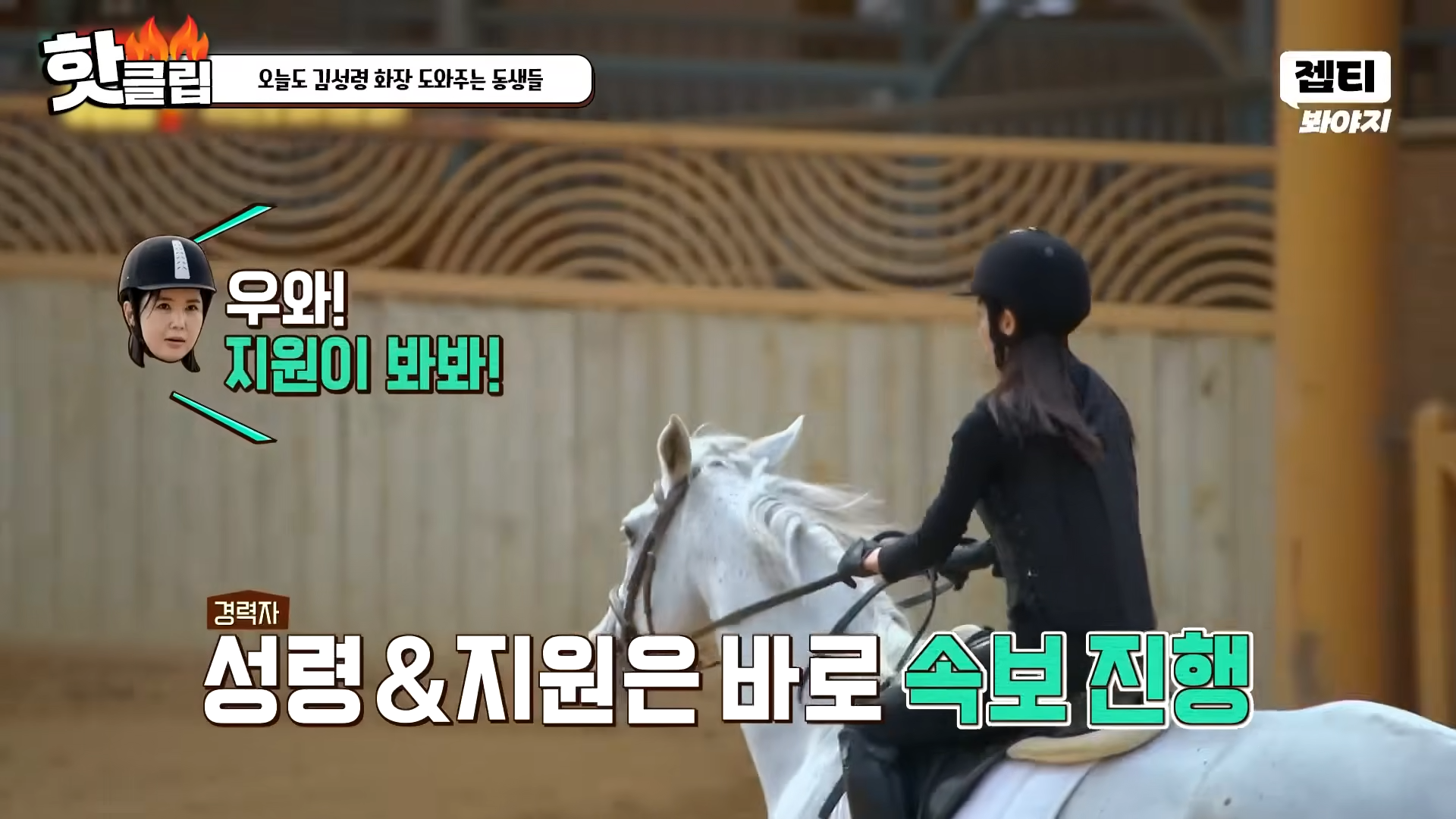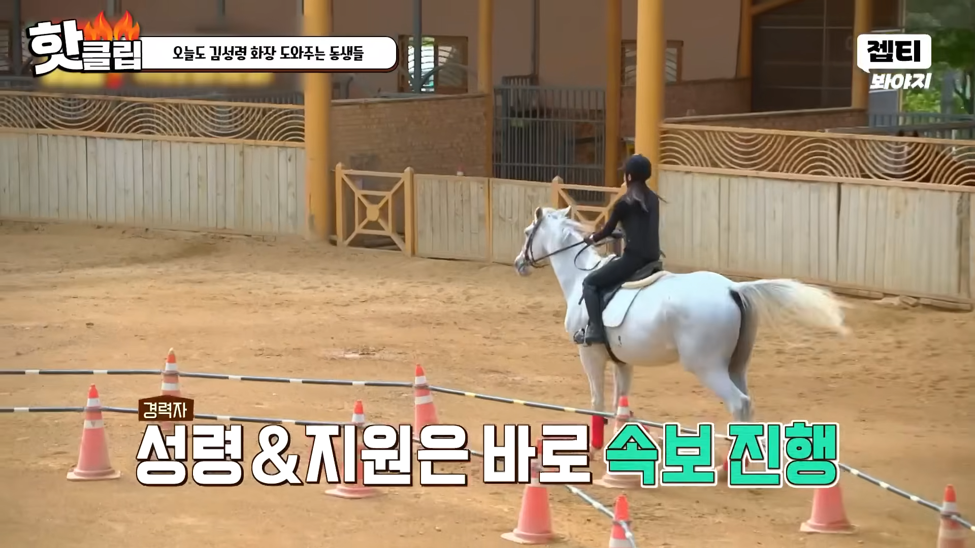 その後、メンバーたちは乗馬場で馬に乗った。キム・ソンリョンとハ・ジウォンは見事な乗馬の腕前を披露した。
