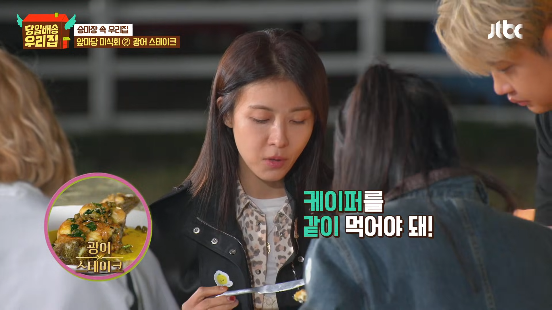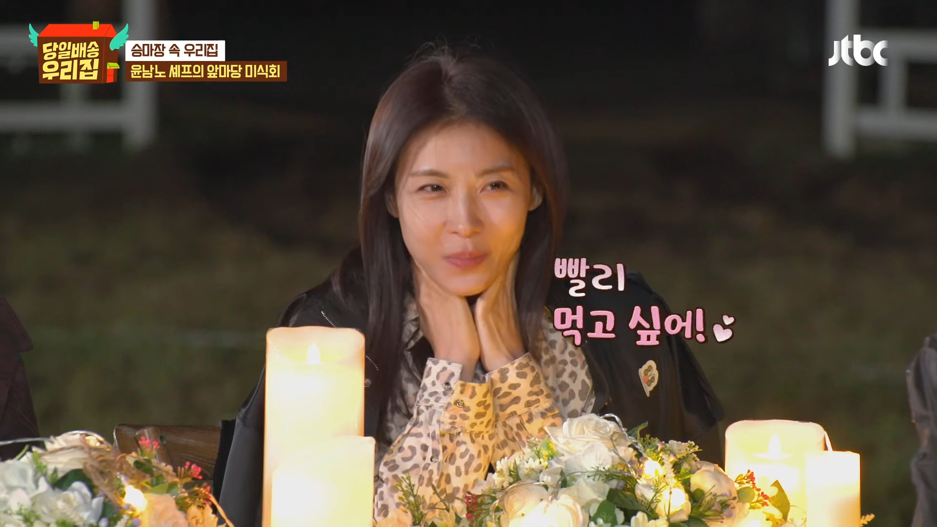 ユン・ナムノはメンバーのために直接料理の材料を準備してきたと明かし、ハ・ジウォンは「私、シェフの料理食べたことあるんです。そして私が選んだんですよ」と『冷蔵庫をよろしく』出演での縁を誇らしげに語った。ユン・ナムノは「引っ越し祝いとして料理を作る」とし、甘エビ料理、ヒラメステーキ、チャドルとアワビの釜飯、ロブスター味噌汁をコース料理として準備したと伝えた。