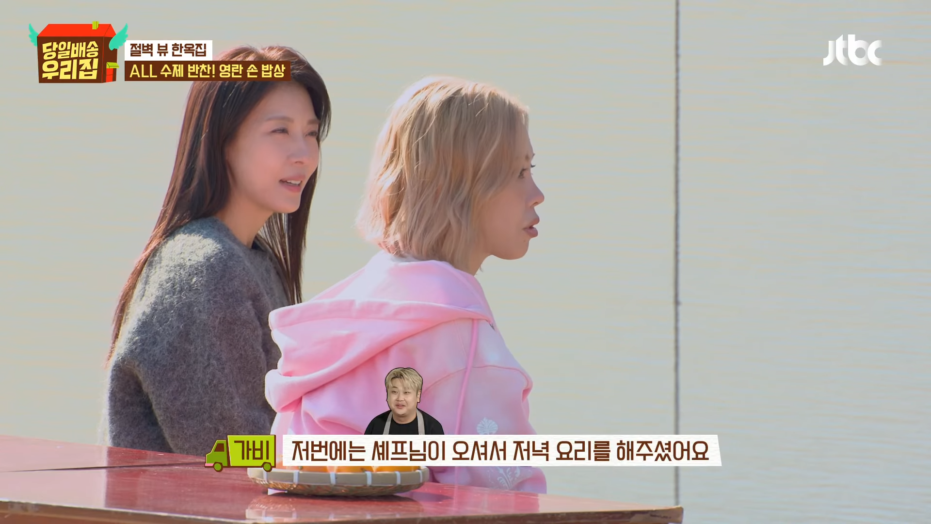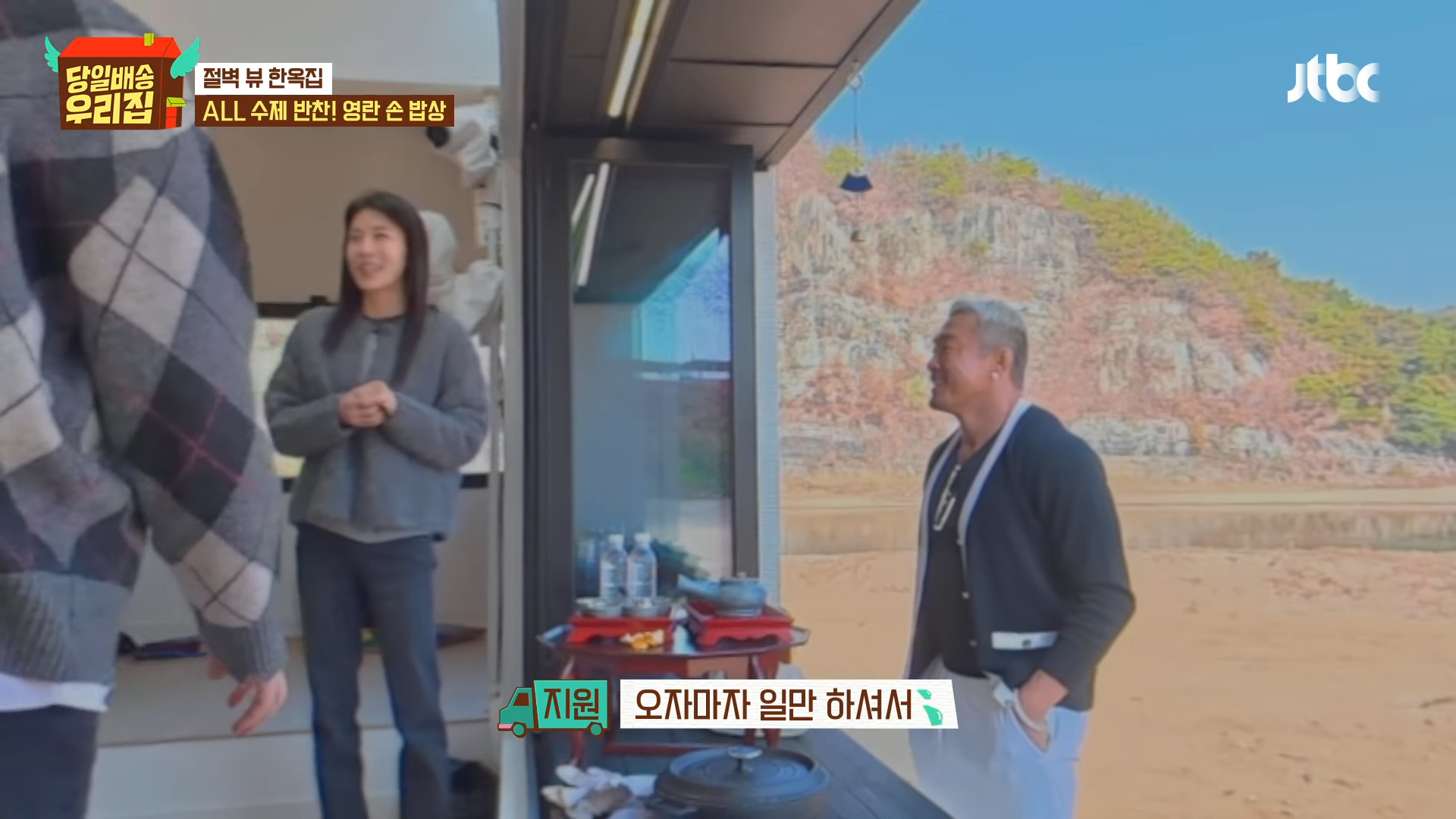 1月13日に放送されたJTBC『当日配送 我が家』では、キム・ソンリョン、ハ・ジウォン、チャン・ヨンラン、GABEEが安東でチュ・ソンフンに会う様子が描かれた。