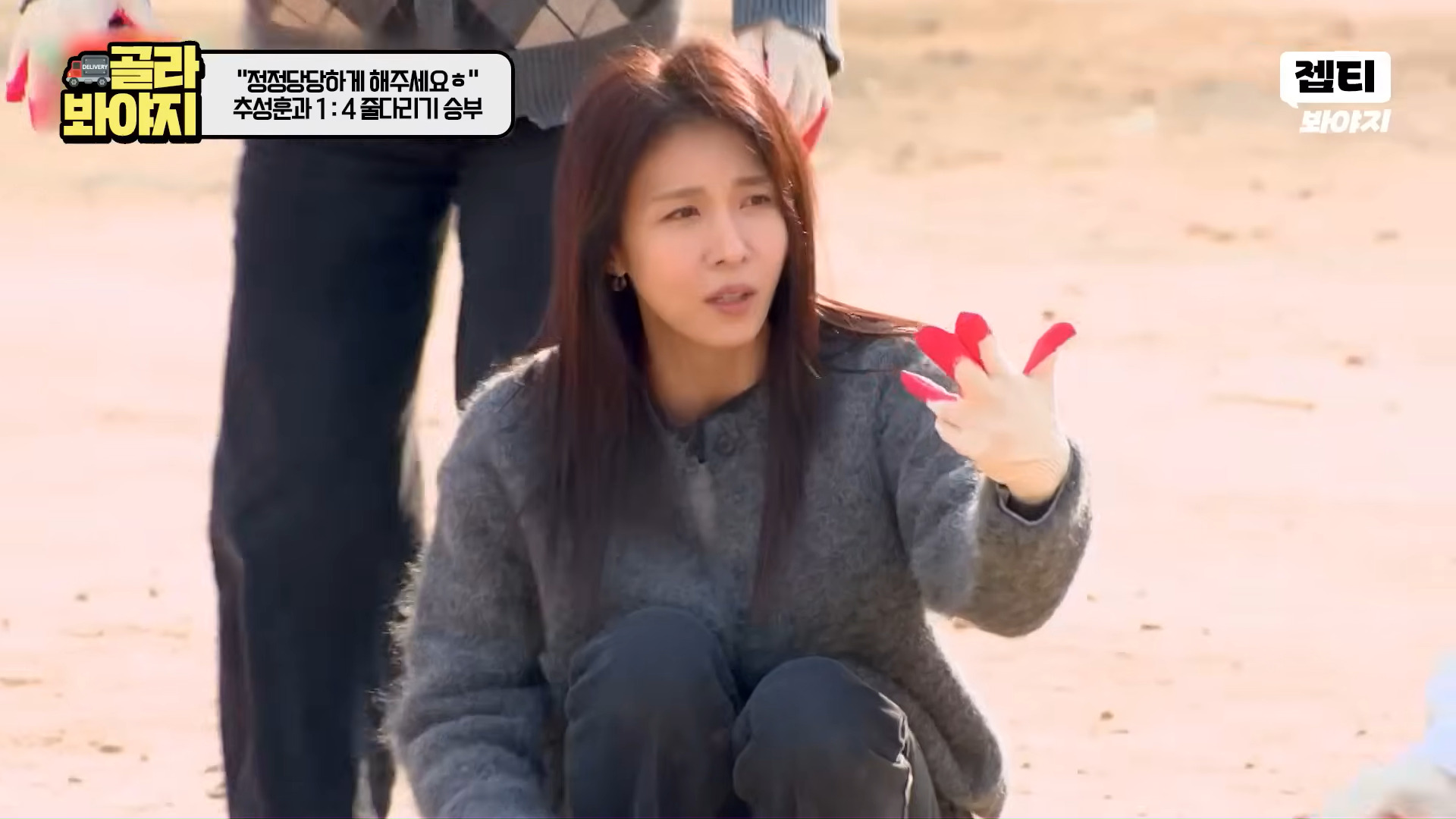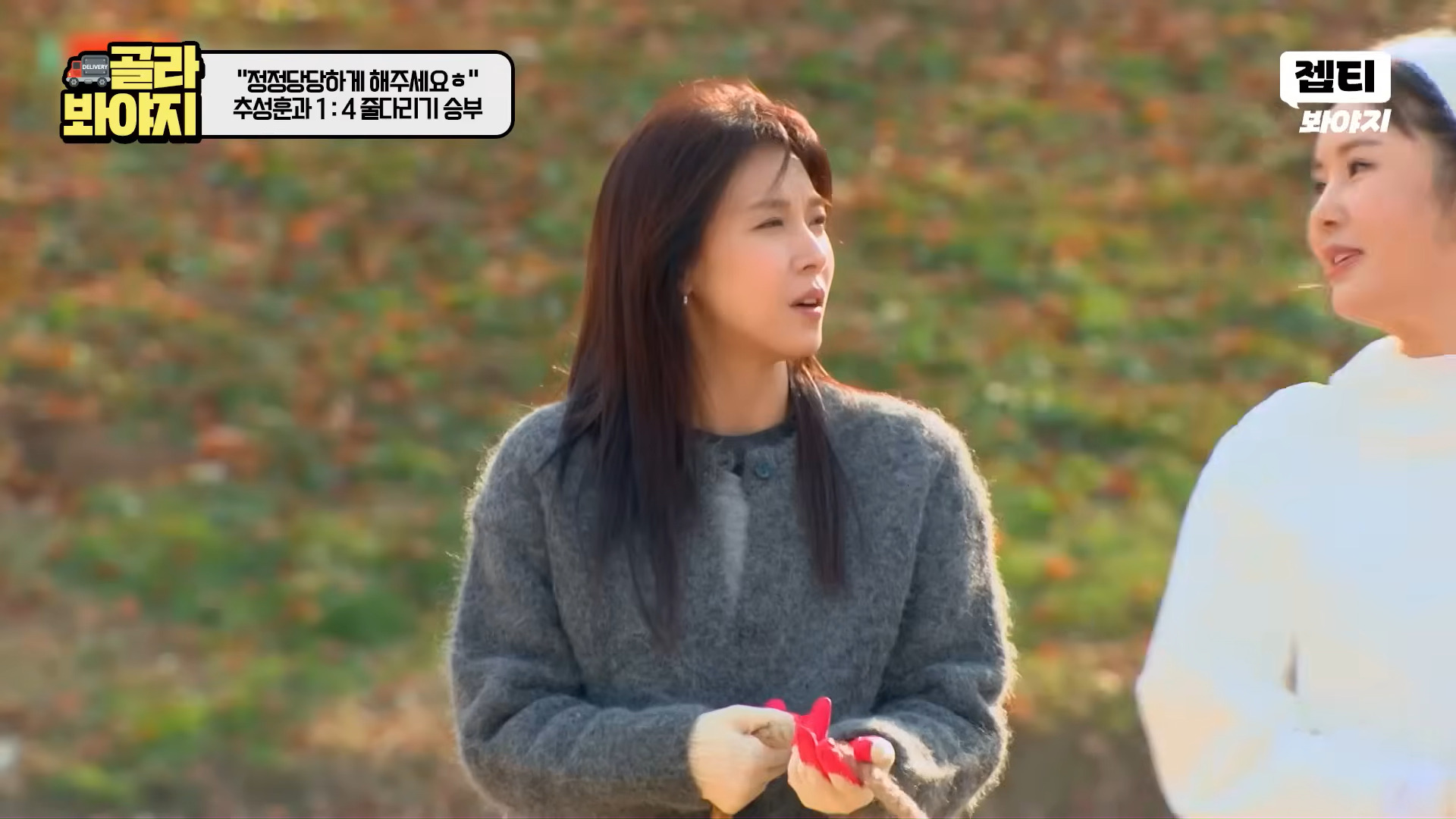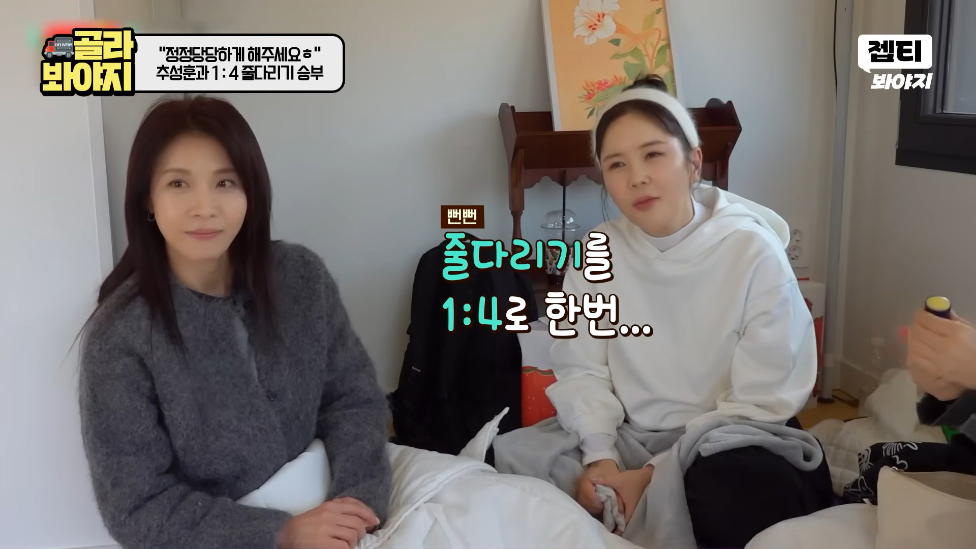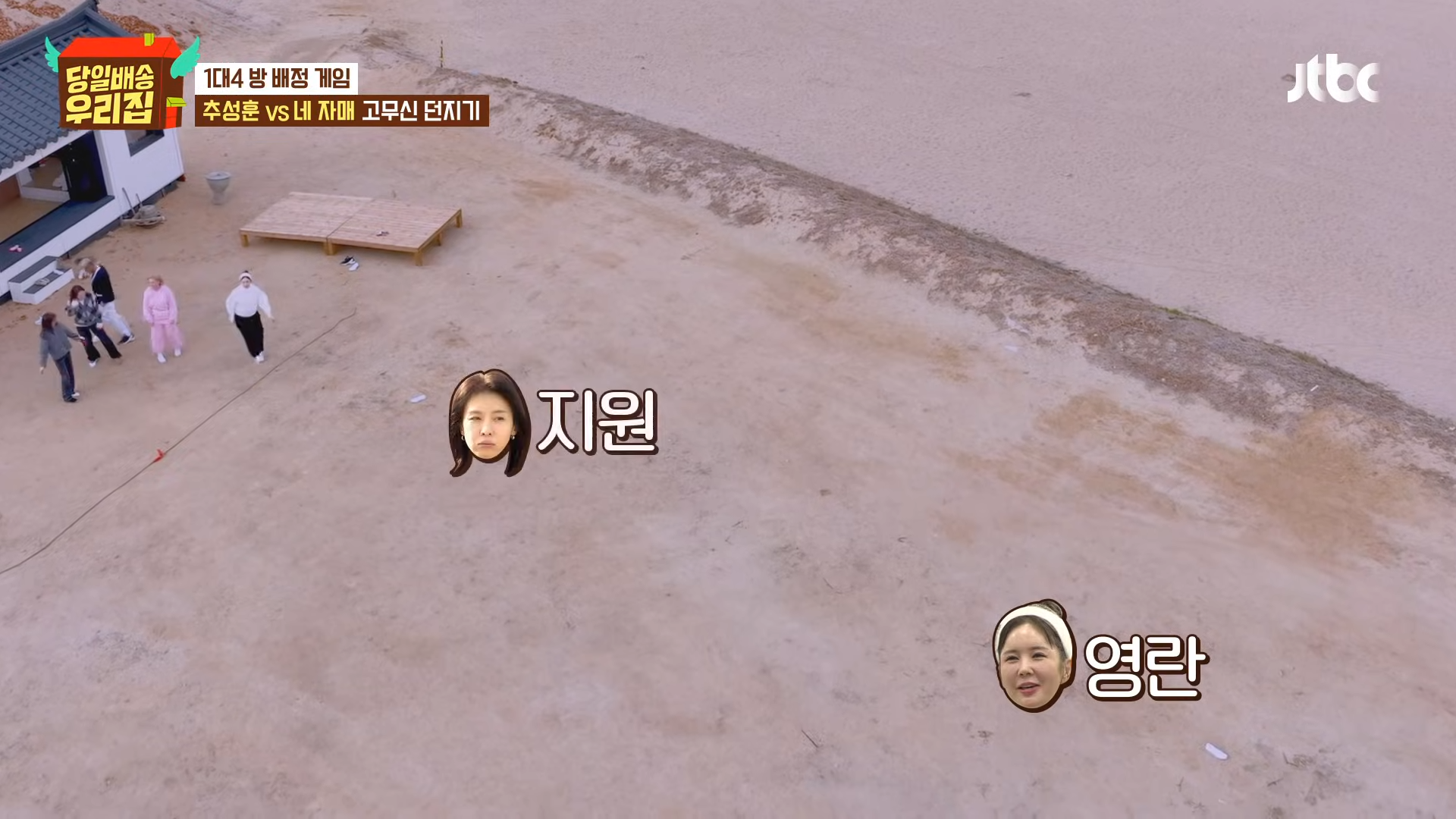 その後、ハ・ジウォン、キム・ソンリョン、チャン・ヨンラン、GABEEは部屋割りをめぐりチュ・ソンフンと4対1のフィジカルゲーム対決に突入。最初の綱引きゲームでハ・ジウォンは開始直後からチュ・ソンフンの圧倒的な力に翻弄され床に投げ飛ばされ、現場を爆笑の渦に巻き込んだ。続く「靴飛ばし」ゲームでもハ・ジウォンは最も近くに靴を落とし「ゲーム最弱体質」を再び証明、「紙人形」を超えた「薄紙人形」キャラクターを完成させた。