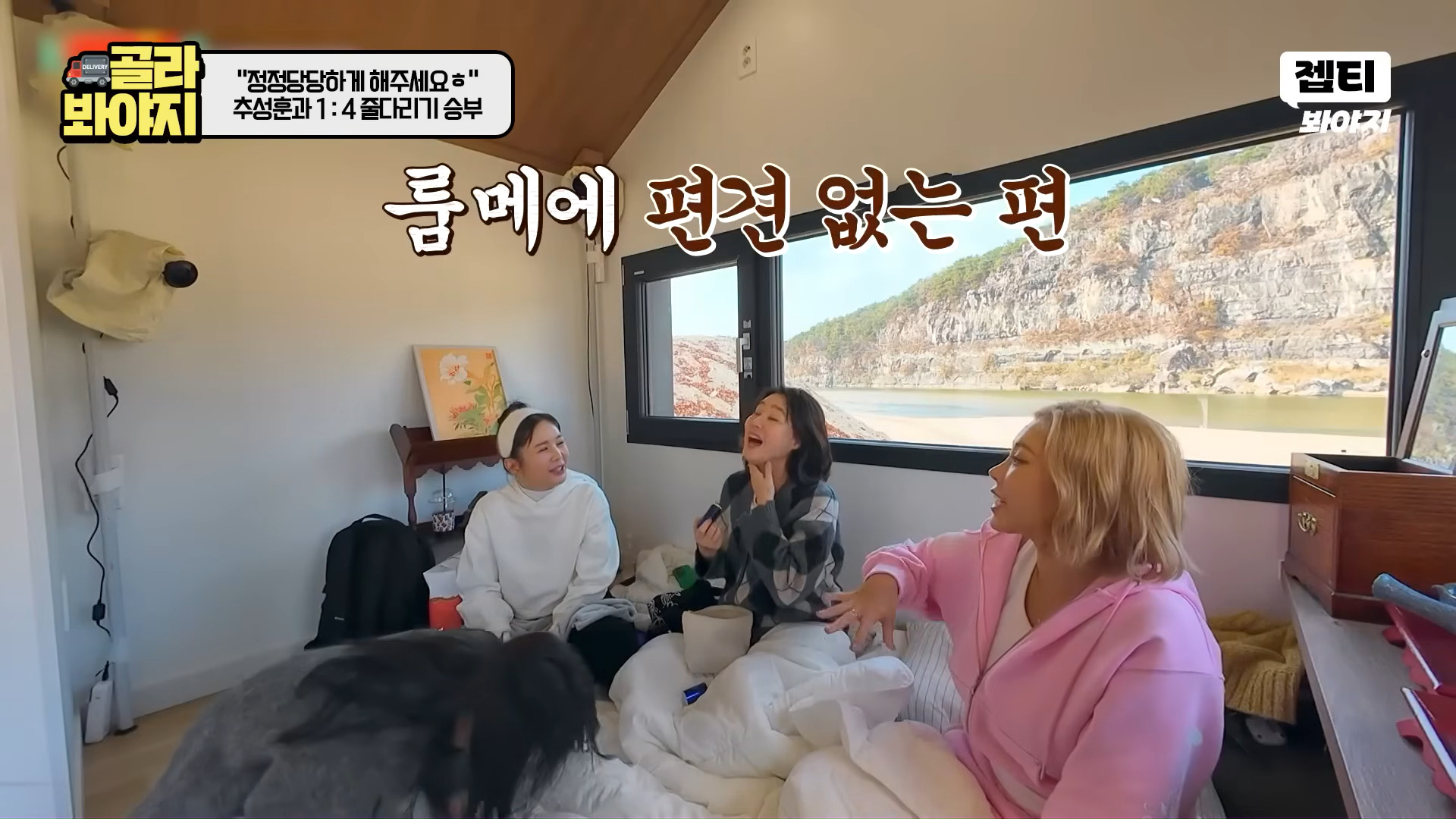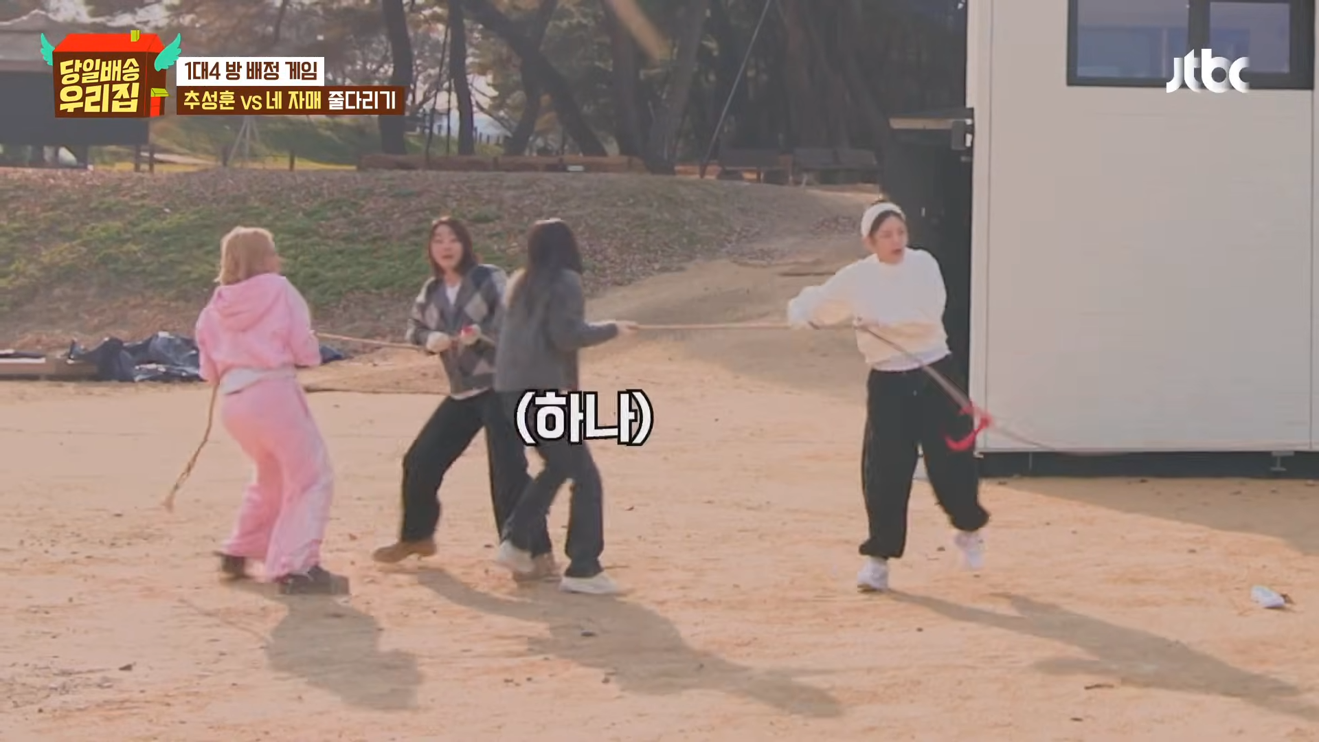 部屋割りゲームのための1対4綱引きが行われ、チュ・ソンフンは大切な時計や指輪を丁寧に置くなど整然とした姿を見せ、姉妹たちは「この指輪本当に重い、一度はめてみたい」と関心を寄せた。