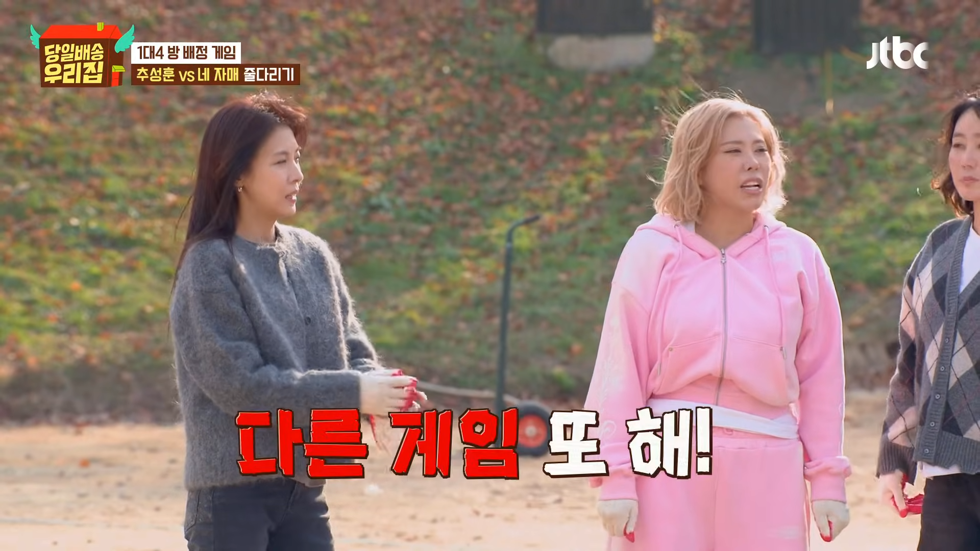 彼はわざとロープを離し、バランスを崩させたと告白。チュ・ソンフンに勝つことが目標となった姉妹たちは「私たち、あまりにも卑怯だ」と笑いを誘った。