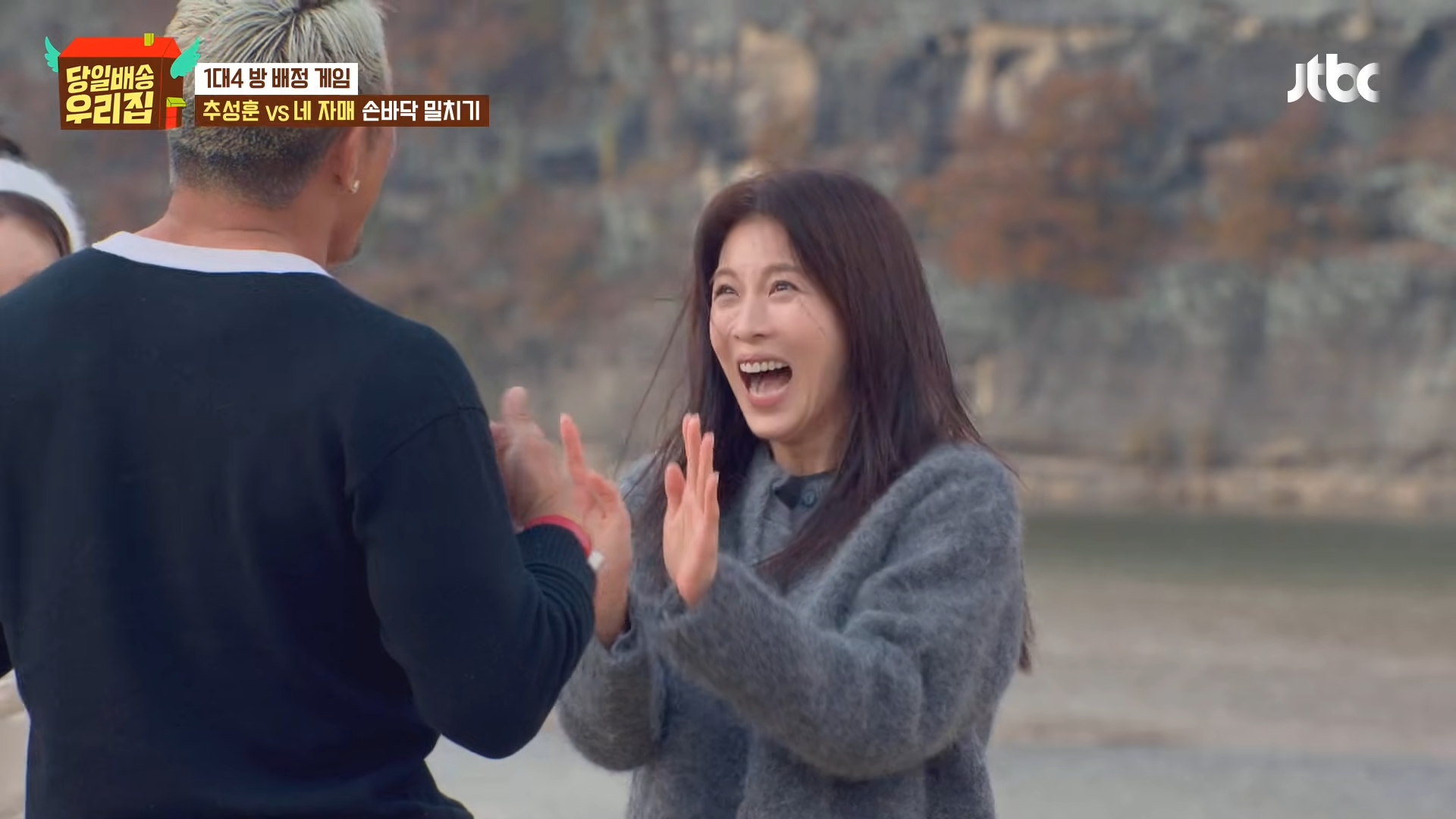 しかし最後の「手押し相撲」ゲームでは意外な展開が。誰もがチュ・ソンフンの楽勝を予想する中、ハ・ジウォンが思いがけない柔軟さと粘り強い耐えで接戦を演出。「私なんで上手いの?」と自ら驚いたハ・ジウォンは予想外の健闘で注目を集めた。