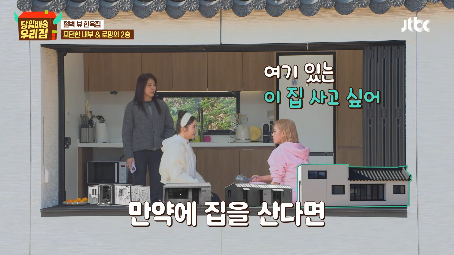 姉妹たちは芙蓉台の崖前に配送された韓屋を見て「実際に自費で買いたい」と目を輝かせた。