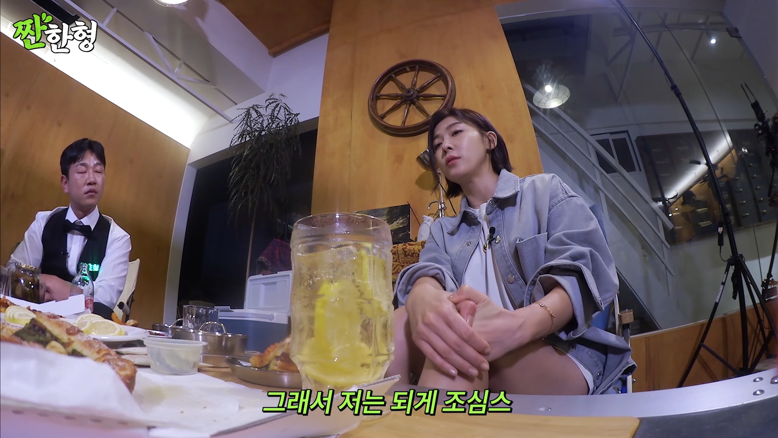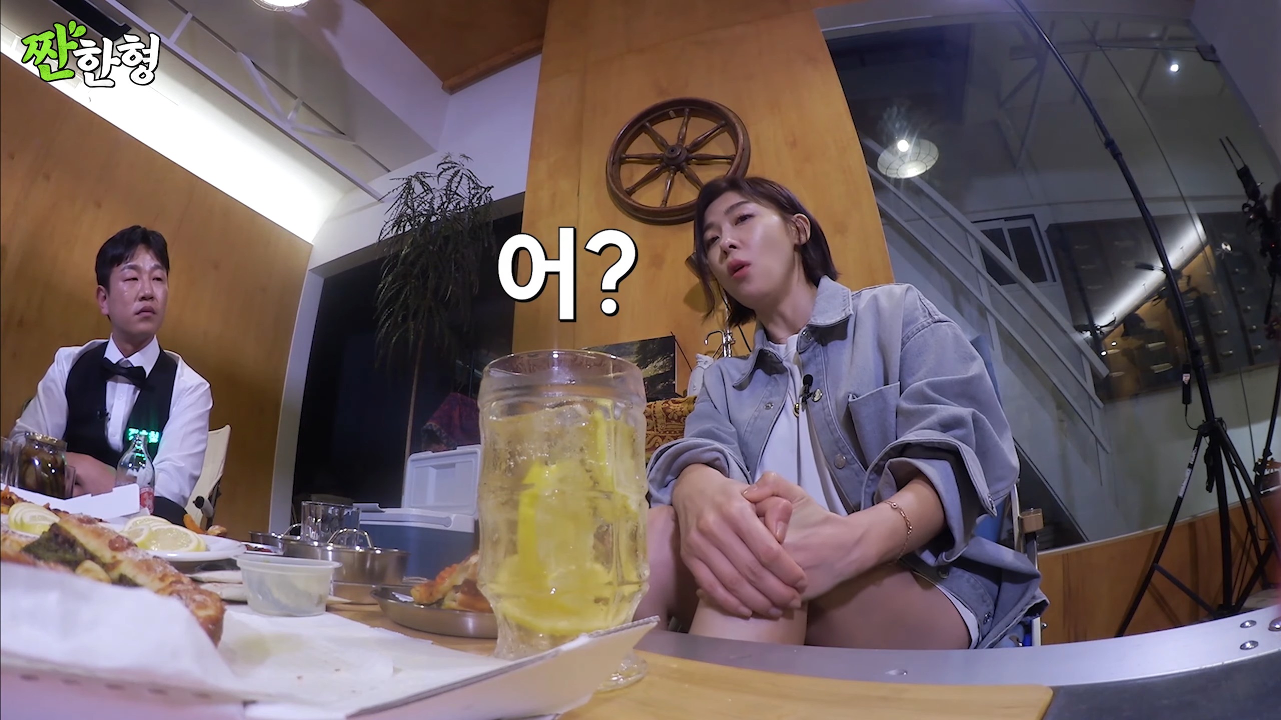 話の途中でテーブルの上に置いてあるカメラの位置が変わったと気づいたジウォンオンニ。😁